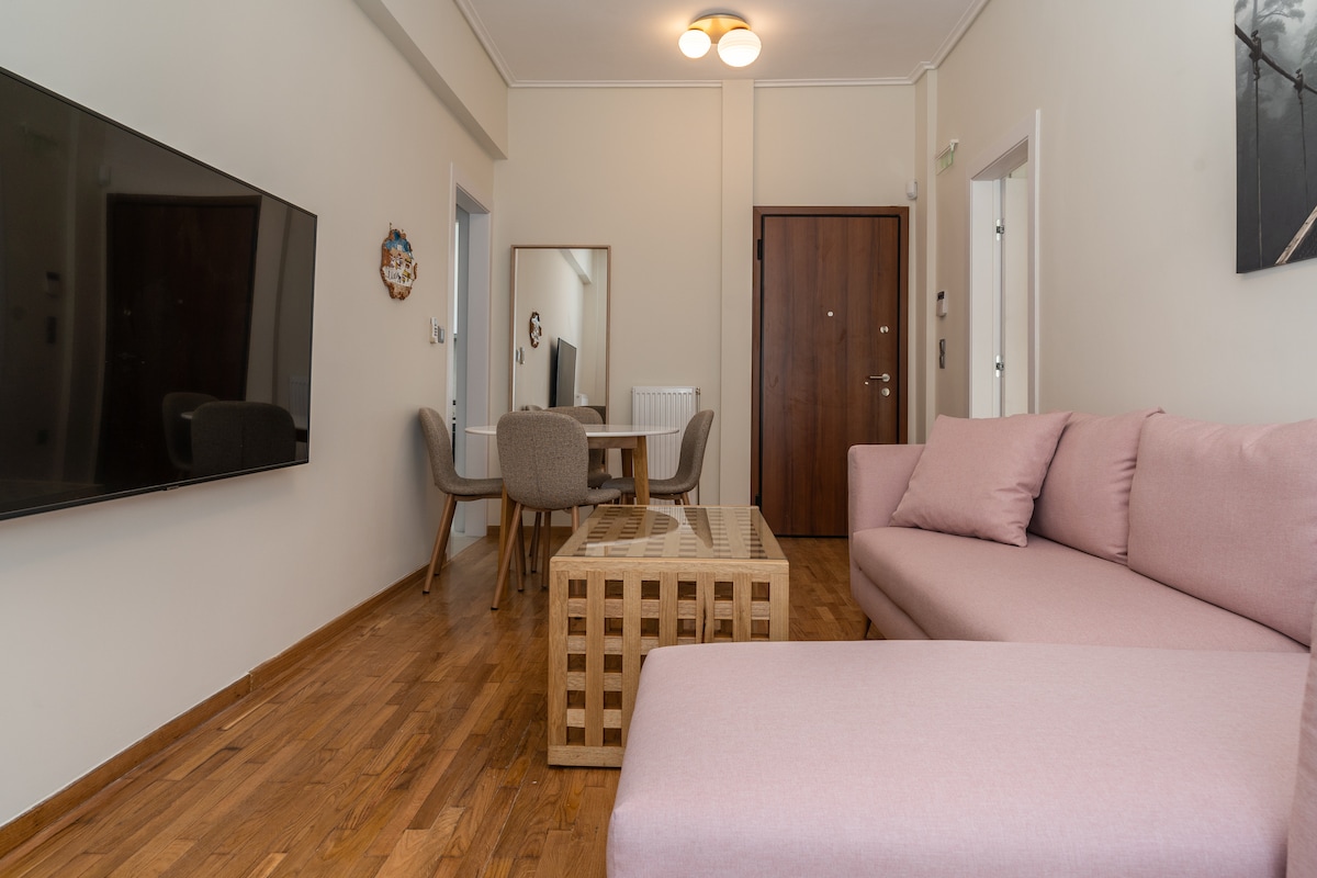 Indulge in luxury at our one-bedroom apartment, conveniently located just steps from the Acropolis. This elegant, modern retreat is tailored for two guests and boasts a fully equipped kitchen, cozy decor, and a contemporary aesthetic. Immerse yourself in Athens' rich history while enjoying the comforts of this exquisite, upscale apartment.