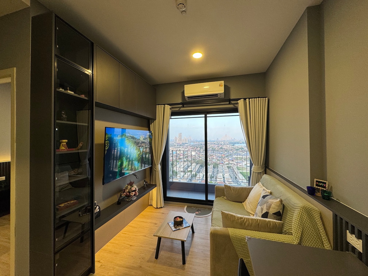 Scopri il comfort e lo stile in questo accogliente appartamento di 30 m ² con vista sul fiume Chao Phraya e sulla foresta di mangrovie. Goditi tramonti mozzafiato dal tuo balcone privato e la comodità di essere a pochi passi dal BTS Chang Erawan (E17), collegandoti al centro di Bangkok in pochi minuti. I tesori locali, tra cui vivaci mercati notturni, un 7-Eleven, un salone e una farmacia, sono proprio dietro l'angolo. A poche fermate di BTS, troverete supermercati e centri commerciali per tutte le vostre esigenze :)