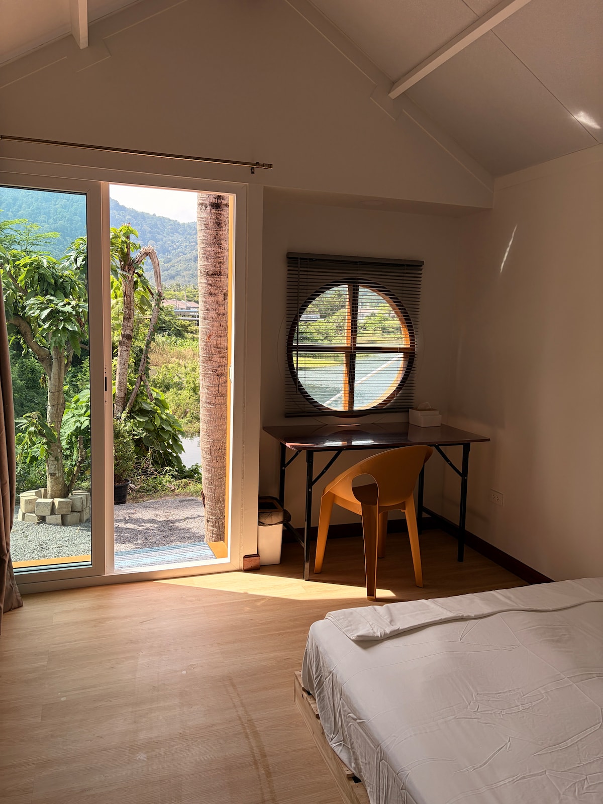 Fuga romantica all'Honeymoon Sweet Home Vivi il romanticismo più autentico al Baan Rai Me Rak. Il nostro accogliente rifugio in legno offre viste mozzafiato sul ruscello e su una natura lussureggiante. Svegliati con il canto degli uccelli e la nebbia mattutina, poi rilassati nella nostra vasca privata. Posizione privilegiata: A 20-30 minuti dall'aeroporto A 20 minuti da Ao Por Grand Marina A 5 minuti dal molo di Bang Rong A 20 minuti dalla cascata di Bang Pae Fuggi dalla frenesia e riscopri l’amore tra le braccia della natura. Il tuo rifugio tranquillo ti aspetta!
