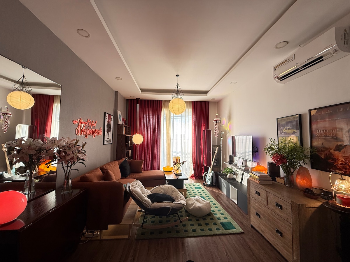La nostra camera si trova in un appartamento medio superbamente tranquillo e silenzioso con vista al piano alto. Ti porterà a 3 km da D1, a 1,5 km dalla metropolitana HCMC più vicina (vai direttamente nel centro di D1 e puoi farlo a piedi), un sacco di bancarelle di cibo di strada sparse sotto l'edificio, mentre hai un proiettore da 100 pollici con Android TV e Premium Netflix, Youtube. Adatto per famiglie, vacanze, relax con un gruppo di amici o anche per appuntamenti.