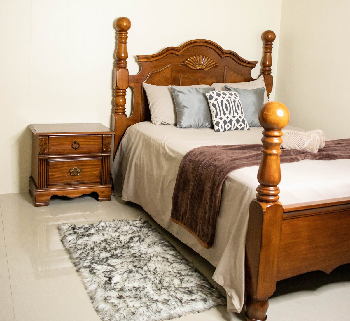 Goditi questo moderno e spazioso appartamento con una camera da letto, è la tua sistemazione perfetta vicino all'aeroporto di Piarco Int. 🛏️ Le caratteristiche comprendono: • Comodo letto queen-size • Wi-Fi veloce e smart TV • Cucina completa con frigorifero, fornelli e molto altro • Aria Condizionata • Bagno privato con acqua calda • Posizione sicura e silenziosa con facile self check-in Goditi uno spazio pulito e riposante per ricaricarti prima o dopo il volo. Ristoranti, negozi e opzioni di trasporto locali sono tutti vicini.
