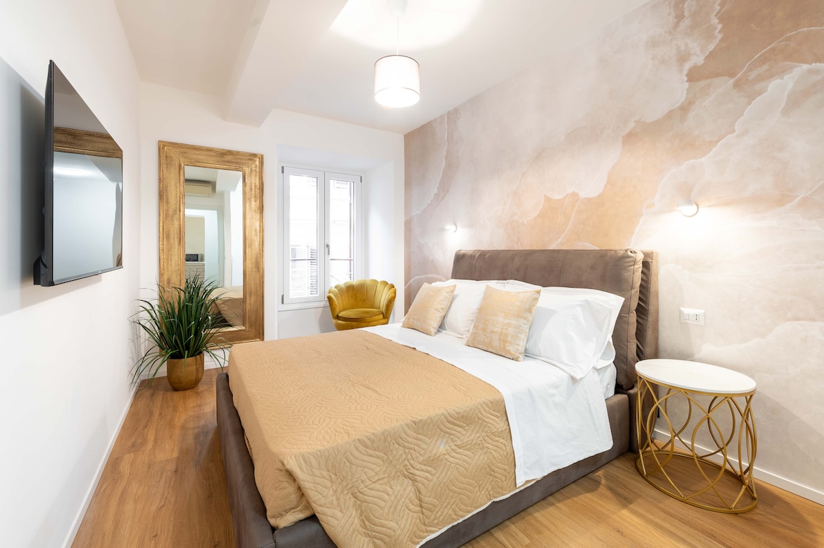 Located a few meters away from the Pantheon, our apartment is composed of a double bed bedroom, a large living room with a double sofa bed, a comfortable equipped kitchen, a bathroom, and an independent shower room. Modern heating and cooling air system for an appropriate temperature throughout all seasons. High speed internet and two 43'' TV with Netflix. The main attractions of the city are all at walking distance: Pantheon, Colosseum, Trevi Fountain, Spanish Steps, Piazza Navona