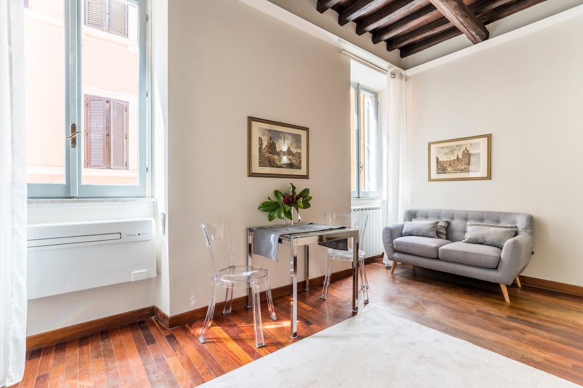 Incantevole, accogliente e raffinato appartamento collocato nello storico Borgo Pio uno dei quartieri più belli e suggestivi del centro di Roma. Sei nel cuore di Roma, a pochi passi dalla Basilica di San Pietro. L'ubicazione è strategica per visitare a piedi la città. La zona è sicura perchè adiacente al Vaticano. Qui trascorrerai un indimenticabile soggiorno a Roma!
