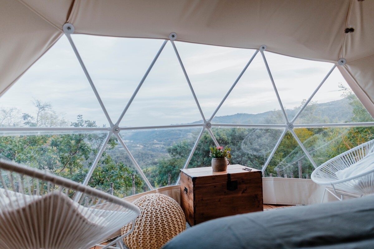 La sfera geodetica posizionata in un terrazzamento di lavanda e salvia con una vista mozzafiato sulle colline circostanti. La sfera è dotata di un letto matrimoniale, un'area relax dove poter gustare in pace una tazza di caffè o tè.Lontani dal turismo di massa in contatto diretto con la natura senza dover rinunciare il comfort.Le sfere sorgono in prossimità di un casale ottocentesco dove sono posizionati anche i bagni, nel mezzo di un bosco di 10 ha con le varie aree relax e angoli meravigliosi.