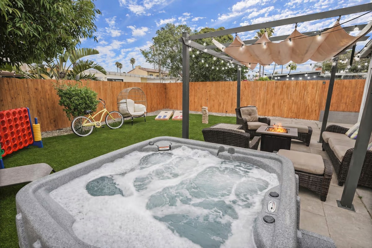 Step in the realm of Calypso Breeze, where you'll discover an oasis boasting one of Ventura's best patios. Unwind stylish surroundings, just a heartbeat away from the beach with Mexican, & sushi delights nearby.Your experience reaches its peak as you bask in the sun-drenched patio. Fire up the BBQ, ignite the fire pit & luxuriate in the bubbling embrace of the jacuzzi. Engage in competition with Connect 4, Ping Pong, or Jenga. Unleash the adventurer in you and create great memories by the beach!