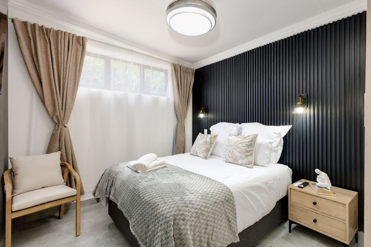 Rilassati e ricaricati in quest'oasi di quiete ed eleganza. Questo appartamento moderno e ben tenuto è per single o coppie in cerca di uno spazio abitativo confortevole. Situato in un quartiere vivace. Si trova a 2,1 km dal centro commerciale Safari Gardens, che ospita un Spar, un Rockofellos & Keg, il Bull Restaurant e molti altri minimarket. Siamo anche a 52,6 km dalla famosa Sun City, dove trascorrere una giornata. L'alloggio è completamente arredato e dispone di Netflix per le notti in cui si ha voglia di stare da soli.