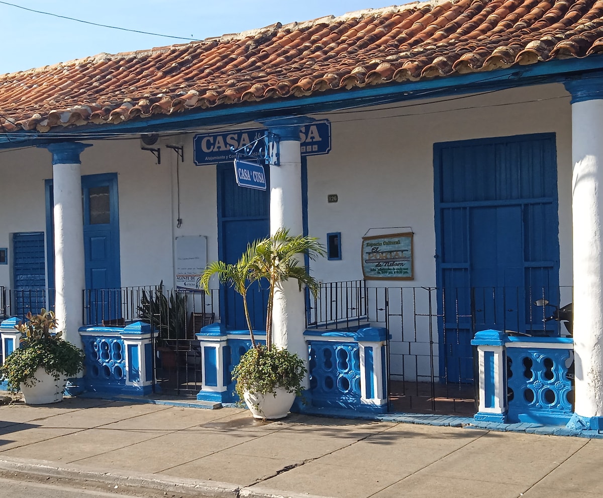 La tua famiglia avrà tutto in questo alloggio in centro. Dispone di 5 camere indipendenti con bagno privato, ben arredate con energia rinnovabile 24 ore su 24, 7 giorni su 7. È vicino a punti di interesse e divertimento locali. Goditi l'autentica cucina creola per colazione, cocktail e cena, oltre a tour, servizio taxi, biciclette, ecc. Dalla nostra terrazza sopraelevata, ammira la catena montuosa circostante. #ViñalesCuba #24hEnergy