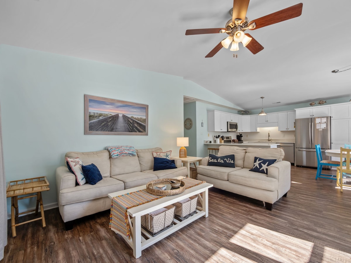 Benvenuti ad AB Sea Digs! Questo accogliente cottage costiero con 2 camere da letto si trova in terza fila dall'oceano ad Atlantic Beach, Carolina del Nord, parte delle Outer Banks meridionali. A sole quattro case dalla spiaggia, è perfettamente posizionato per godersi giornate di mare e brezze oceaniche. Goditi interni luminosi, una doccia esterna e un capanno rifornito di sedie a sdraio e un carrello per una vita costiera semplice e spensierata.