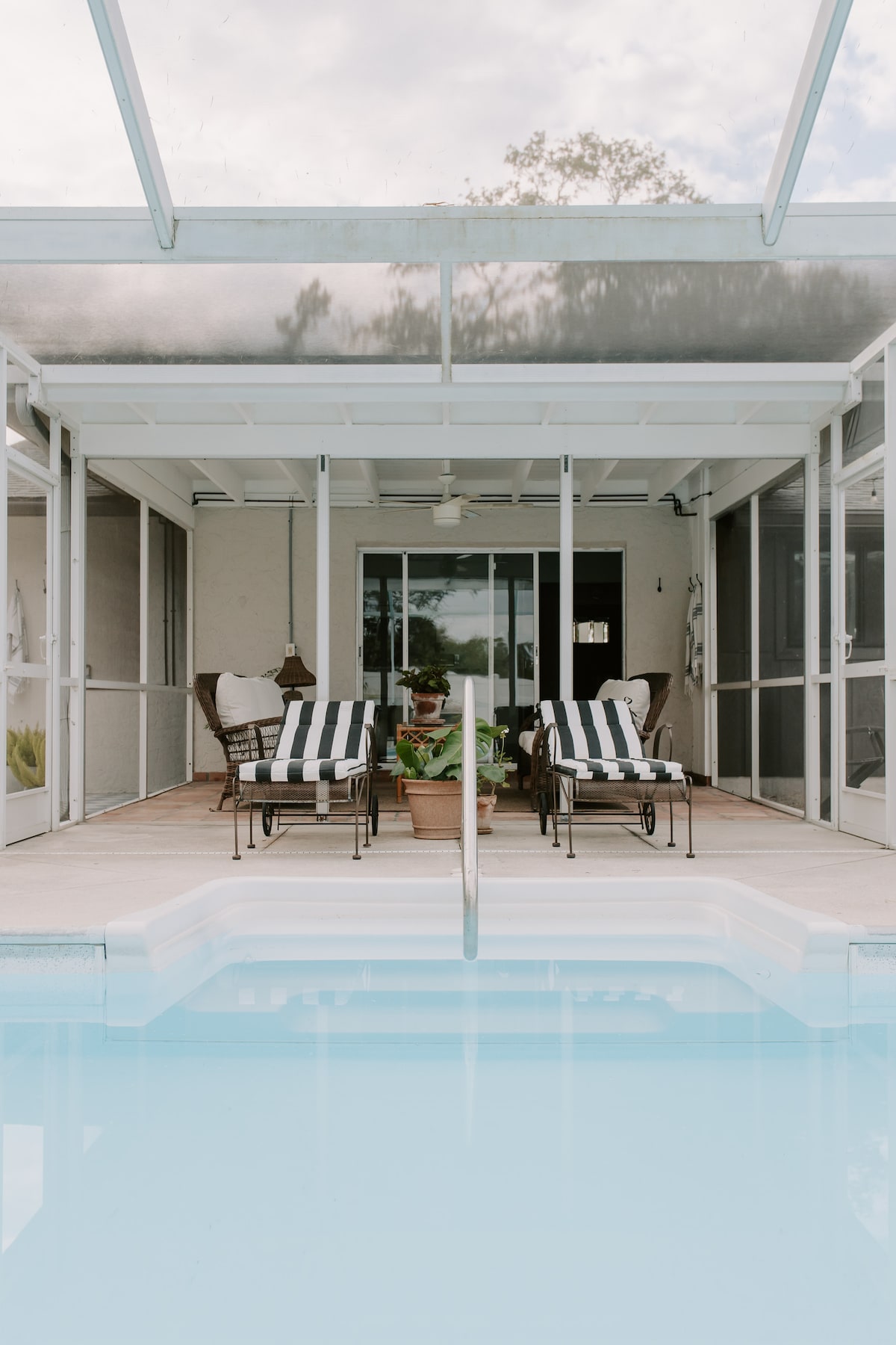 Just outside of Downtown near the Legacy Trail, this home is located in a quiet neighborhood only 15 minutes from the Siesta Key Beach. The home stands out with its bright and airy design, brand new saltwater pool in the private backyard, and its breezy living room. The large master bathroom rain shower is perfect to wash off the leftover sand from the beach. You can also spend your evenings grilling out back or playing corn hole in the patio area.