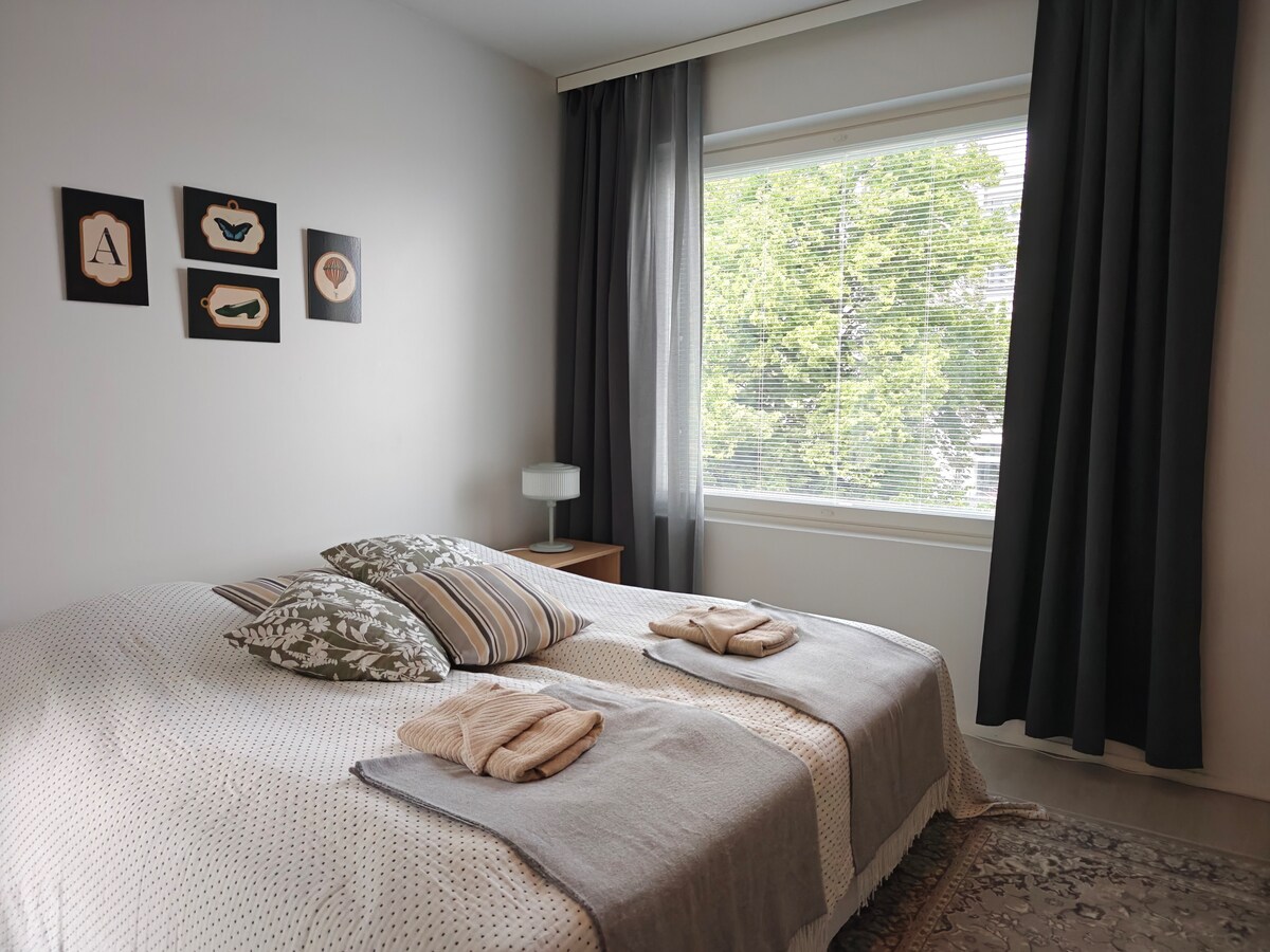 Tyylikkäästi sisustettu kaksio 500m ydinkeskustasta. Parivuode 140cm ja vuodesohva esim 1-2 lapselle. Keittiö korkeatasoisesti varusteltu,kaikki kodinkoneet. TV,Wifi,Chromecast. Iso (10m2) kalustettu parveke oleskeluun. Sisään- ja uloskirjautumisajat joustavat ilman lisäkorvausta,varaustilanteen mukaan