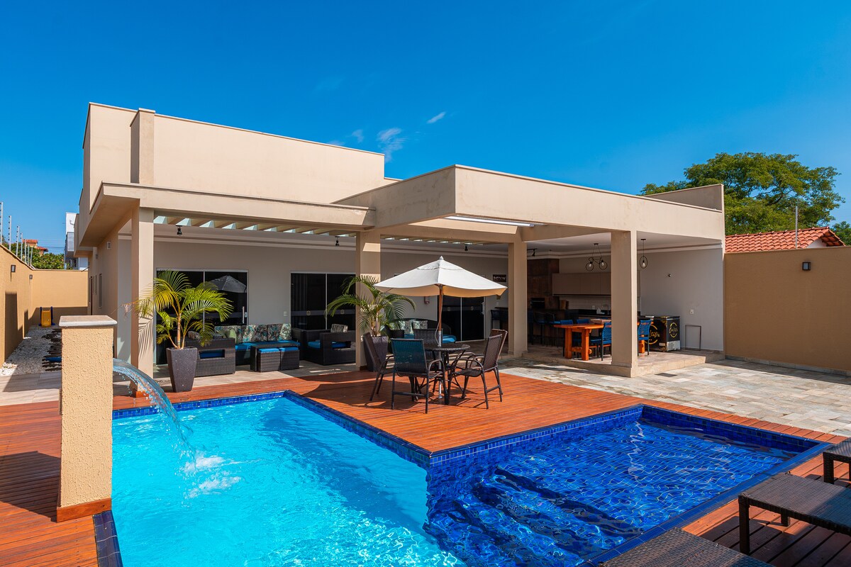 Divirta-se com a família neste lugar cheio de estilo. Casa recém construída, situada em bairro residencial tranquilo, asfaltado, seguro, menos de cinco minutos de carro do centro histórico. Máximo dez pessoas, bem acomodadas nas quatro charmosas suítes, todas com ar condicionado. Disponibilizamos roupas de cama, mantas, toalhas de banho, utensílios domésticos e de churrasqueira. Piscina com aquecimento solar NÃO ACEITAMOS ANIMAIS. PROIBIDO SOM ALTO OU BARULHO EXCESSIVO, DE DIA OU DE NOITE