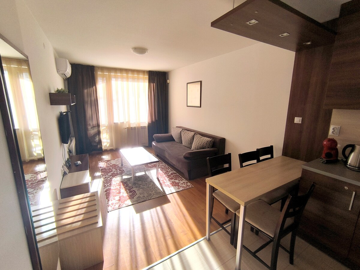 Ciao, adoro viaggiare con la mia famiglia e uso me stesso airbnb. C'è un confortevole appartamento per vivere con bambini, così come per i nomadi digitali (connessione internet perfetta inclusa). Splendido appartamento nuovo nell'hotel SPA Resort St Ivan Rilski, navetta gratuita per gli impianti di risalita o 10 minuti a piedi. L'elegante appartamento è composto da due camere da letto, 2 posti di lavoro, una grande cucina e soggiorno, due balconi grandi e un bagno accogliente. È incluso 1 posto auto!