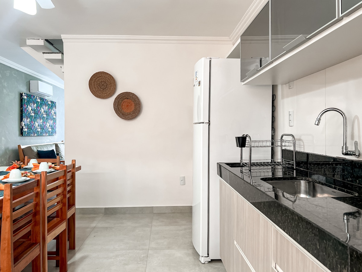 CasaCharmeConforto Arraial dispone di 2 suite, una cucina completa e una PISCINA PRIVATA. Si trova in una zona nobile con facile accesso a Rua Mucugê e alle spiagge. MASSIMO CONSENTITO: 8 persone. Gli ospiti sono molto affezionati alla posizione. A 2 minuti di auto dal centro. A 3 minuti di auto dall'Eco Park. Ideale per chi vuole divertirsi e allo stesso tempo rilassarsi in un ambiente accogliente e sicuro. Abbiamo biancheria da letto e da bagno, aria condizionata, lavatrice, Wi-Fi e barbecue. CONSIGLIO DI PRENDERE UNA MACCHINA. Check-in/out flessibili.