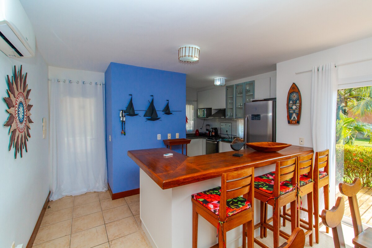 Casetta accogliente, tutto nuovo, incantato e della giusta dimensione. Pareti composte con dipinti di artisti locali, che ti faranno respirare autenticamente questa regione di Bahia. Oltre all'arredamento firmato da incredibili architetti del posto. 2 piani, sotto salotto e cucina, sopra le 2 suite. Piscina collettiva proprio di fronte e la spiaggia di Parracho proprio lì, a pochi passi. Intorno a te, natura viva. Si trova in una zona un po' isolata, ma vicino a Rua Mucugê. Una danza perfetta tra trambusto e privacy =)