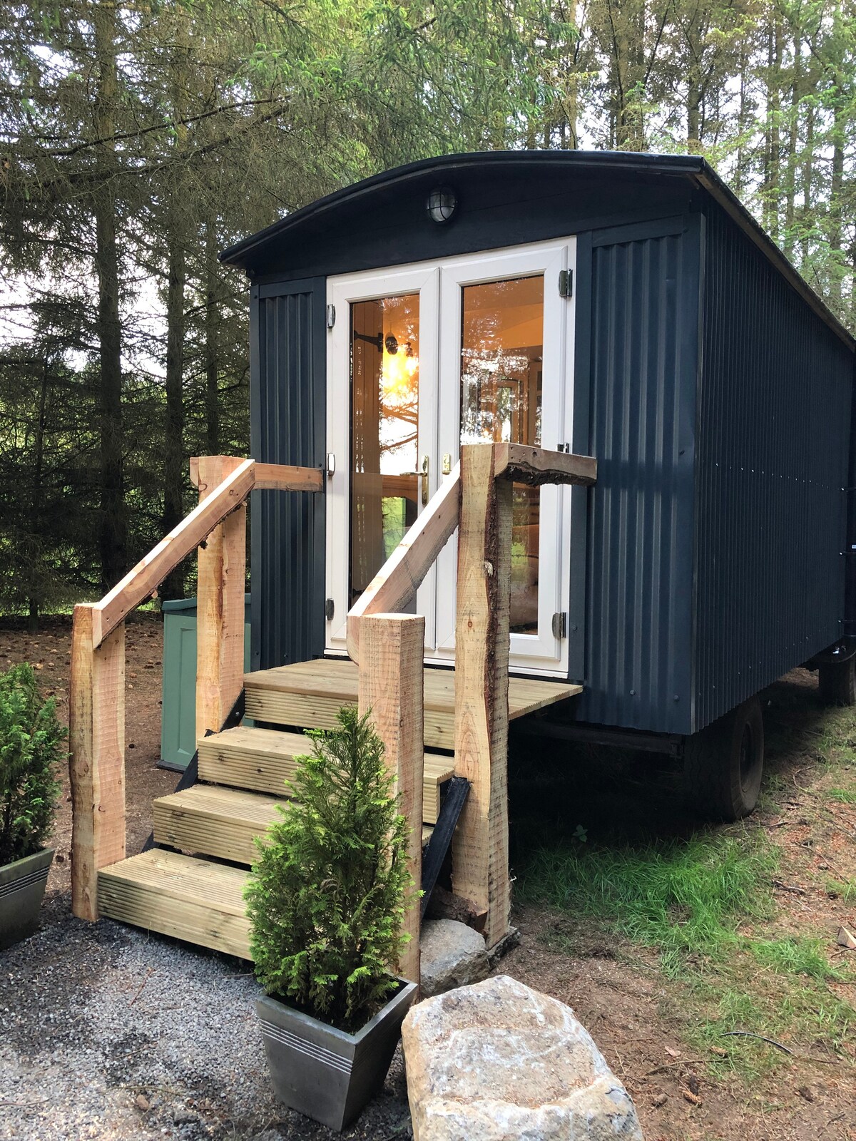 *Featured on Visit Scotland 2022* Fully licenced ( licence no AS00973F) Oak lodge is set in rural Aberdeenshire and sleeps2 people. Consists of a well equipped kitchen/dining/living space, king size bedroom and modern shower room. Oak lodge has all of the modern comforts of electricity, heating and hot water, making it far more luxurious than your typical shepherd hut. Oak lodge also has its own private parking area and outdoor seating area and is not overlooked. Dogs welcome with no limit