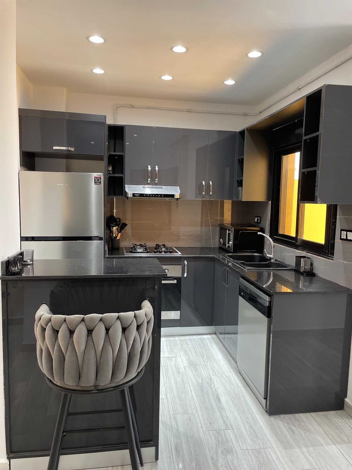Amerete questo alloggio per la sua vista mozzafiato sul Mar Mediterraneo dal balcone e dalle vetrate, il suo design moderno open space, in una nuova residenza di lusso, nuova e sicura (solo famiglie), e la sua posizione eccezionale a Frange Maritime proprio accanto all'iconico e ricercato quartiere "Akid Lotfi", a due passi da negozi, ristoranti, pasticcerie e dal centro commerciale Palais d'Or. Giardino di fronte per passeggiare o trascorrere del tempo in famiglia.