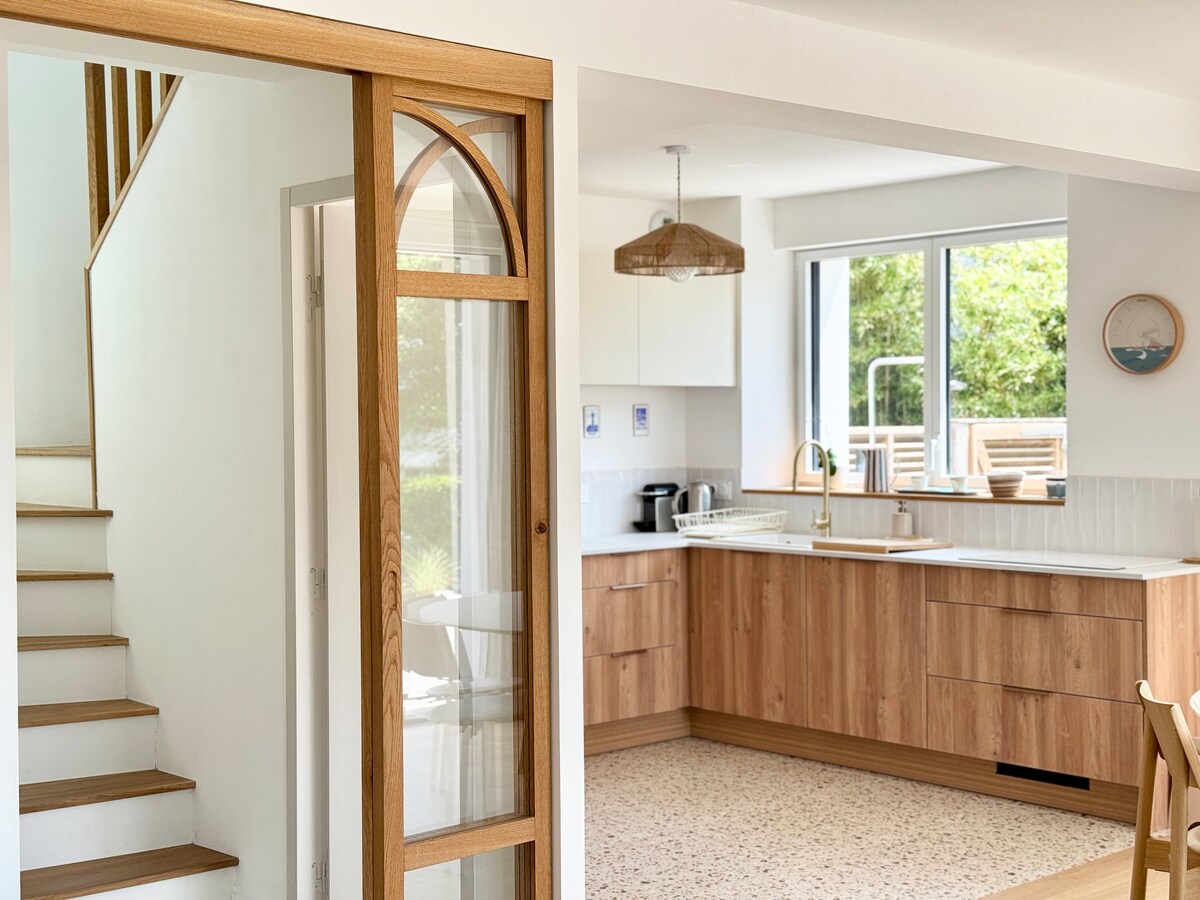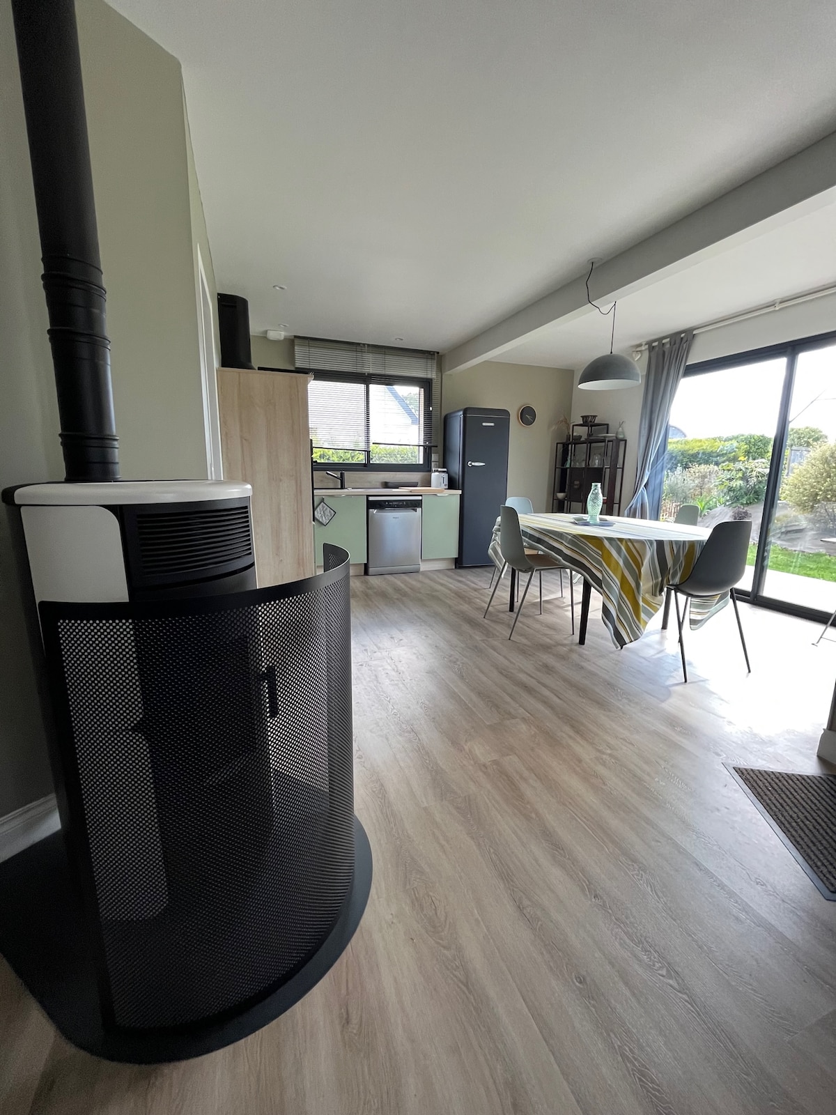 Venite a soggiornare a Fouesnant, nel cuore della splendida Riviera bretone. Situata in posizione ideale a soli 2 km dalle spiagge di Mousterlin, questa graziosa casa in legno situata in una strada senza uscita offre un ambiente tranquillo e rilassante. Questo piano unico di 120m2 si apre su un ampio soggiorno e offre 2 bagni e 3 ampie camere da letto, tra cui una master suite (18m2). Il luminoso soggiorno dà accesso a una terrazza esposta a sud e al suo giardino paesaggistico.