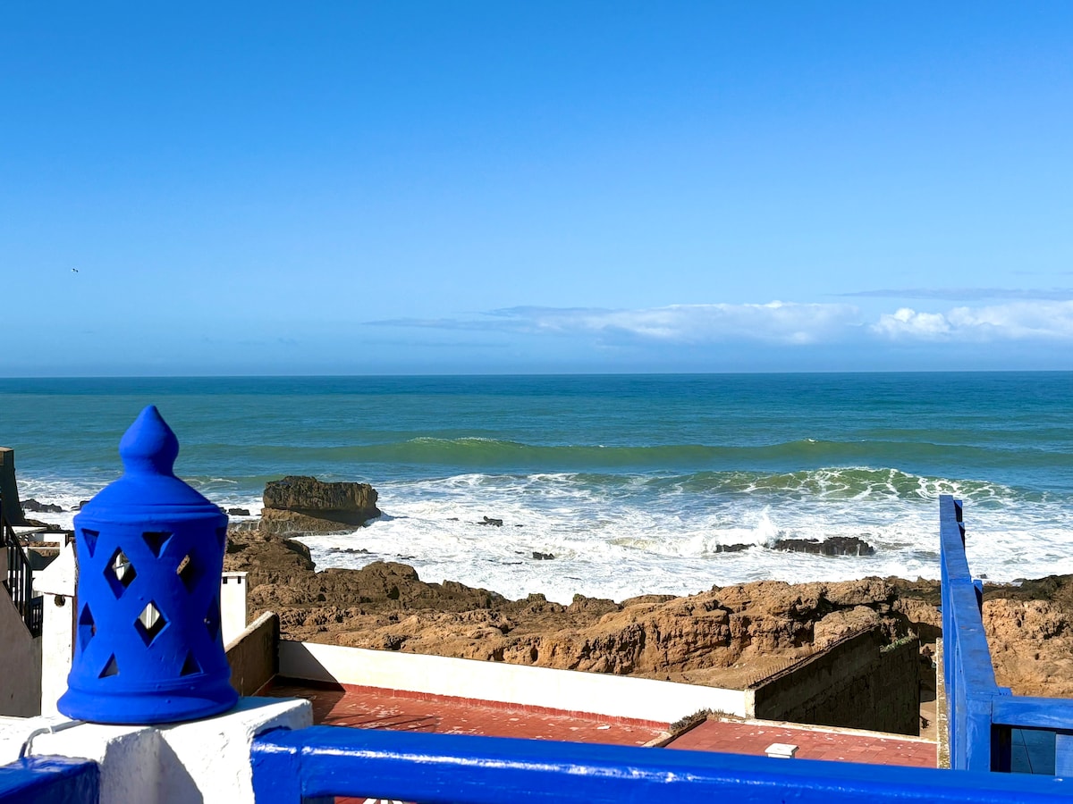 D’accès facile avec vue sur mer à près de 180°, la maison « Chalizés » est aux portes de la médina d’Essaouira. Ou se trouve-t-elle ? Vous serez à 3 minutes à pied du parking si besoin de garer votre voiture et de la station des taxis qui se trouve à Bab Sba’a Le vieux port, les rues commerçantes, le marché de légumes et de poissons se trouvent à plus ou moins 10 minutes de marche. L’accès à la plage se trouve à même pas 5 minutes à pied de la maison !!