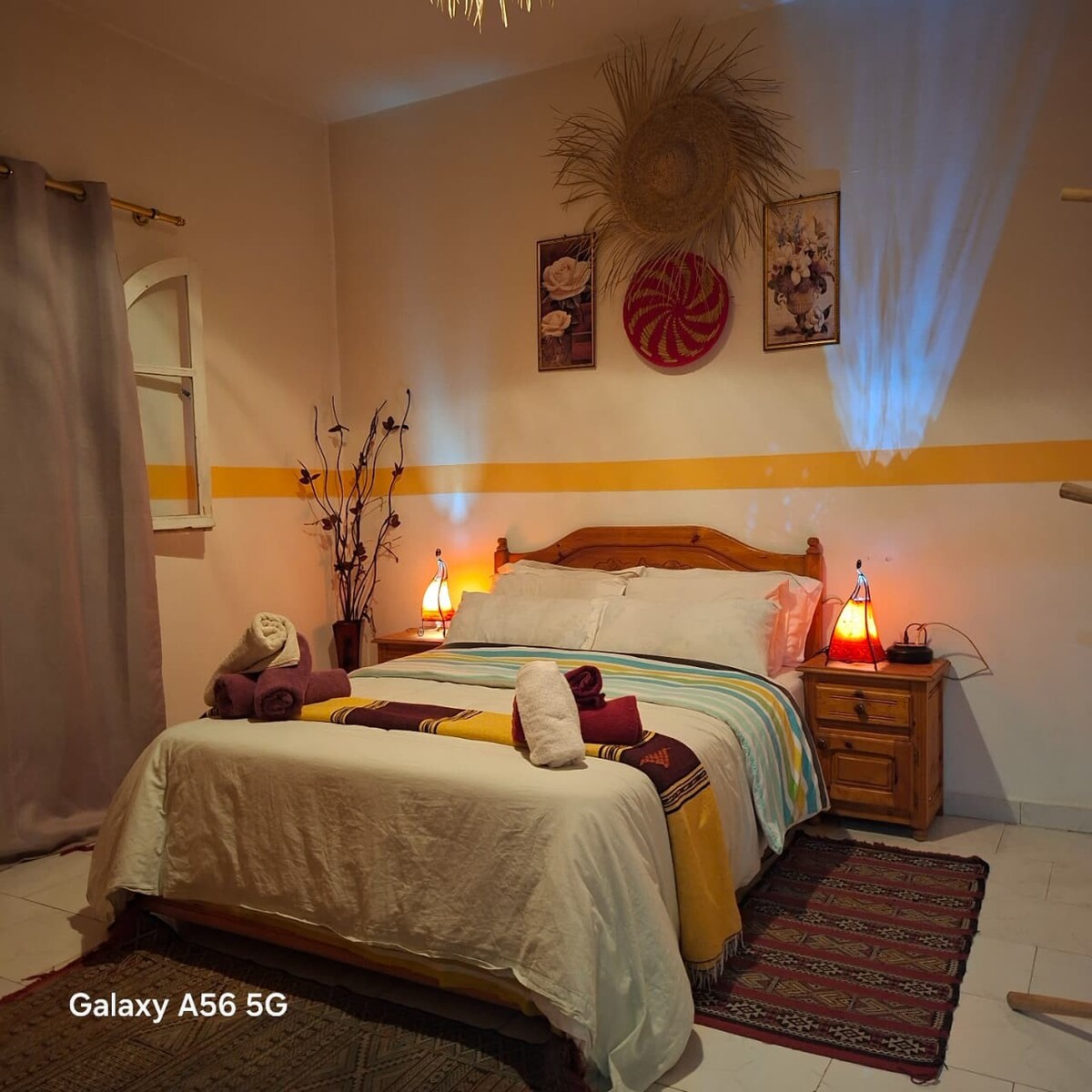 Ti diamo il benvenuto a Essaouira: ti aspetta un soggiorno indimenticabile! L'appartamento gode di una posizione eccellente, a soli 7 minuti a piedi dalla spiaggia, e a 3 minuti di auto dal Carrefour per una spesa veloce. In alternativa, puoi prendere uno dei taxi accessibili dalla strada principale, che offrono una tariffa fissa di 1 $ per raggiungere la medina, oppure puoi goderti una passeggiata panoramica di 28 minuti attraversando la spiaggia. Inoltre, ci sono posti dove mangiare a pochi passi di distanza. Tutto è ben curato, anche i dettagli, l'arredamento, la pulizia e la manutenzione.