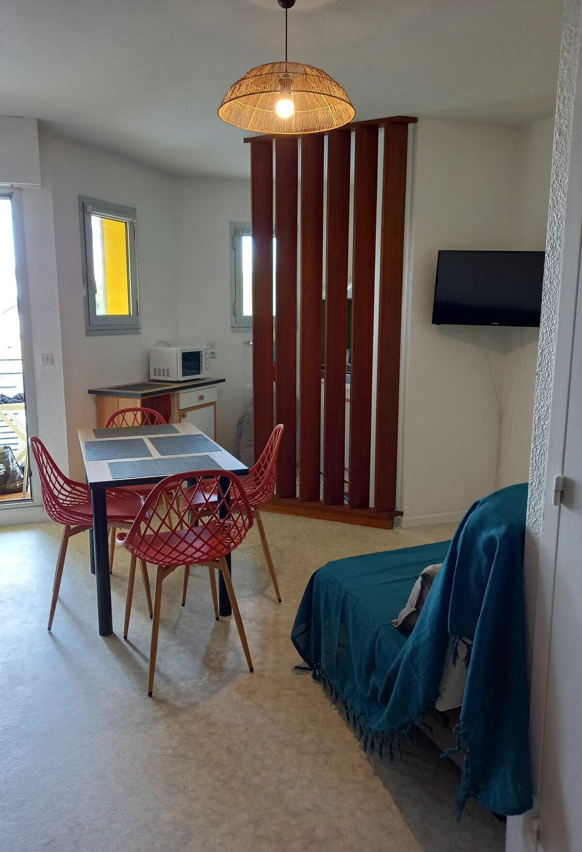 Questo alloggio è situato in posizione ideale vicino al mare. Siete da un lato a 50 metri dalla spiaggia e dall'altro a 100 metri da tutti i negozi, in un condominio tranquillo e sicuro. Monolocale di 23m² con due letti a castello e un divano letto con un posto letto di qualità. Soggiorno che si apre su una terrazza, cucina, bagno con servizi igienici. Disponete di un posto auto privato. Potrete dimenticare il vostro veicolo per tutta la durata del vostro soggiorno!