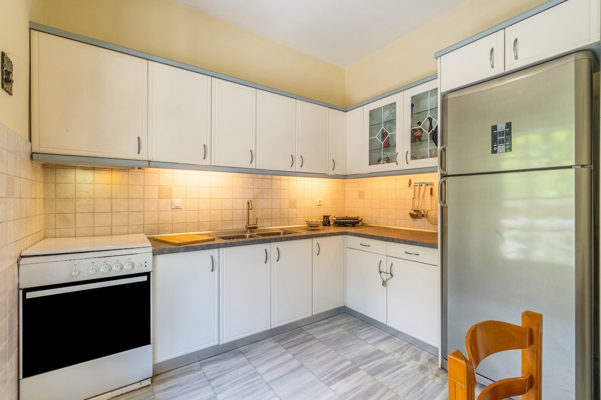 La nostra Villa Estia (92 m²) si trova direttamente nella meravigliosa Paleokastrista. La vista sul mare della baia di Platakia e sul porto di Alipa rendono questa casa un luogo speciale. Due bagni, due camere da letto, una moderna cucina a vista completamente attrezzata e un soggiorno con angolo pranzo e caminetto, tutti nuovi del 2018, garantiscono il massimo comfort per il tuo soggiorno. La casa è per 4-6 persone. Il divano letto può essere utilizzato per altre 2 persone.