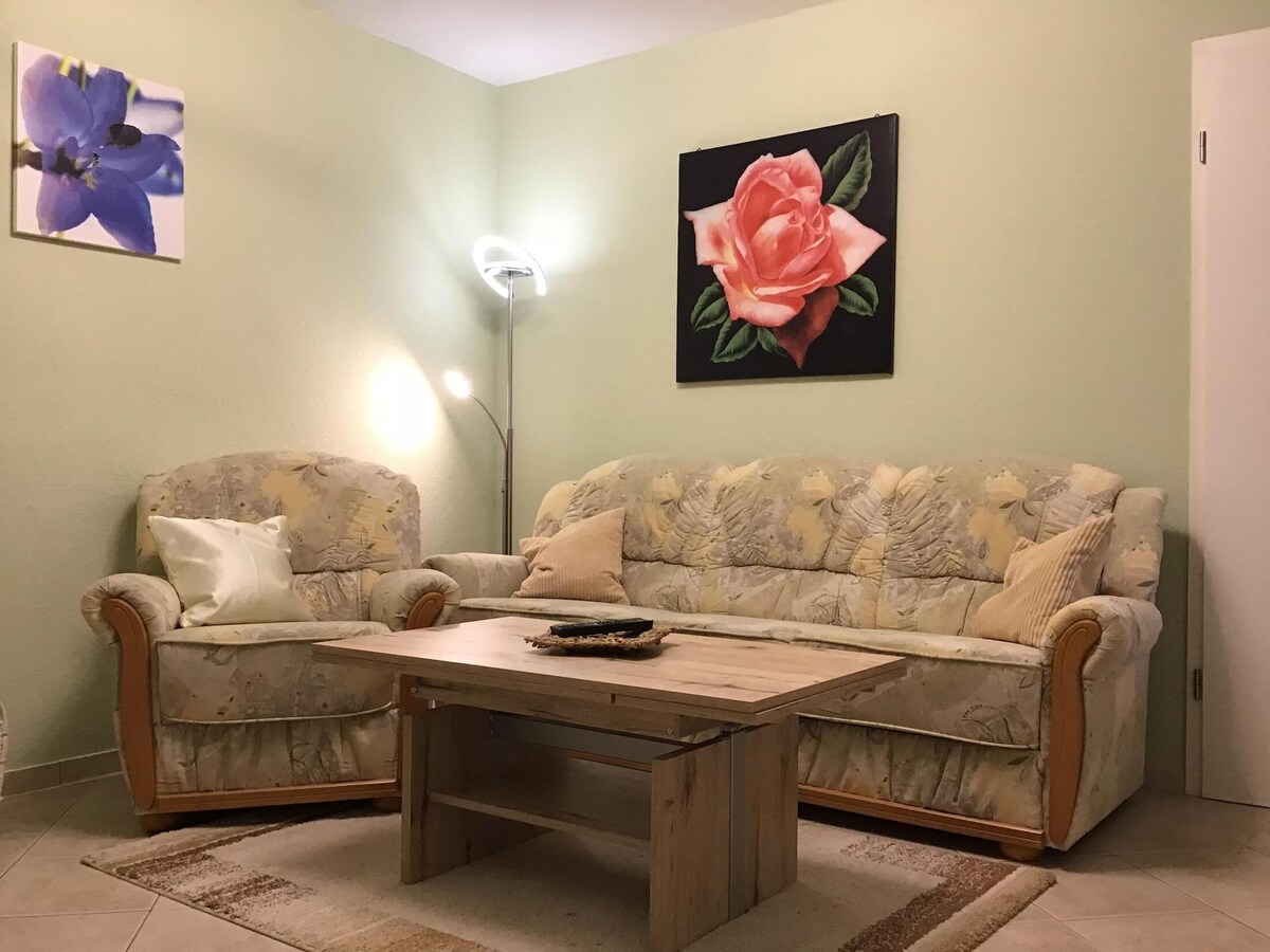Nell'ex casa colonica in una tranquilla posizione ai margini del campo si trova questo nuovo appartamento moderno di circa 85 m2 (casa a schiera) con 2 camere da letto per un massimo di 4 persone (+culla fino a 3 anni). Dietro la casa si guarda attraverso campi e prati (possibilità di uscita per cani) e si può camminare direttamente nella natura, attraverso il villaggio o l'ex Gutspark.