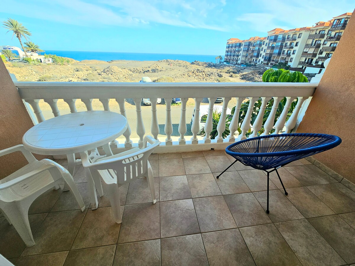 GOLDEN BEACHFRONT OASIS. Newly renovated, perfectly located, fully furnished luxury apartment with a private terrace overlooking the Atlantic Ocean and just a few steps from Playa Amarilla beach. Peaceful and away from crowded areas, yet close to supermarket and restaurants. Only 15 minutes by car from Tenerife South Airport. Free parking right under the apartment. Community pool. Experienced Superhost with over 2.200 reviews.
