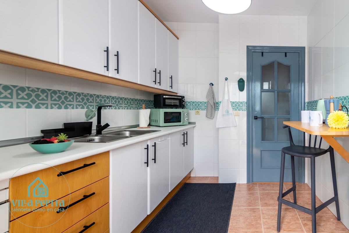 La tua vacanza ad Almerimar inizia qui 🌊 Appartamento in pieno centro, a soli 5 minuti dalla spiaggia e dal porto turistico. 2 camere da letto (letto matrimoniale + letto a castello con 3 posti letto + letto supplementare), un soggiorno luminoso, una terrazza vetrata e una cucina attrezzata. Di fronte all'appartamento c'è una piazza con ristoranti e caffetterie. Non è necessario usare l'auto. Self Check-In. Supermercati al piano terra e Mercadona a 5 minuti. Ideale per coppie, famiglie o gruppi di amici.