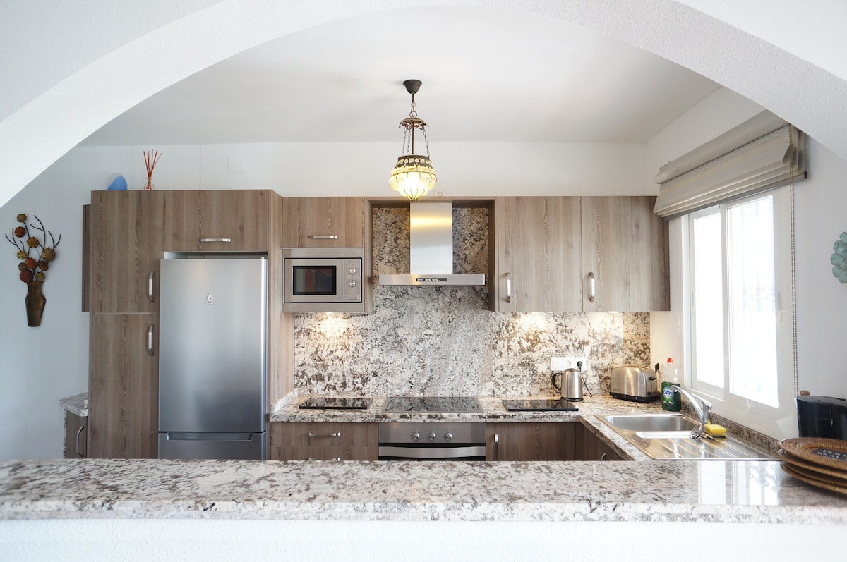 Scopri la quintessenza di una vacanza costiera in questa luminosa villa in stile andaluso, dove ogni stanza è una finestra sui panorami mozzafiato a 180° del Mediterraneo. Goditi il sole tutto il giorno! La casa con 3 camere da letto dispone di una piscina privata di acqua salata con riscaldamento opzionale e terrazze con vista tutt 'intorno. Goditi la cucina attrezzata, la luminosa zona giorno e i mobili eleganti. Garage e wifi disponibili. Goditi questo Airbnb sulla spiaggia tutto l'anno!