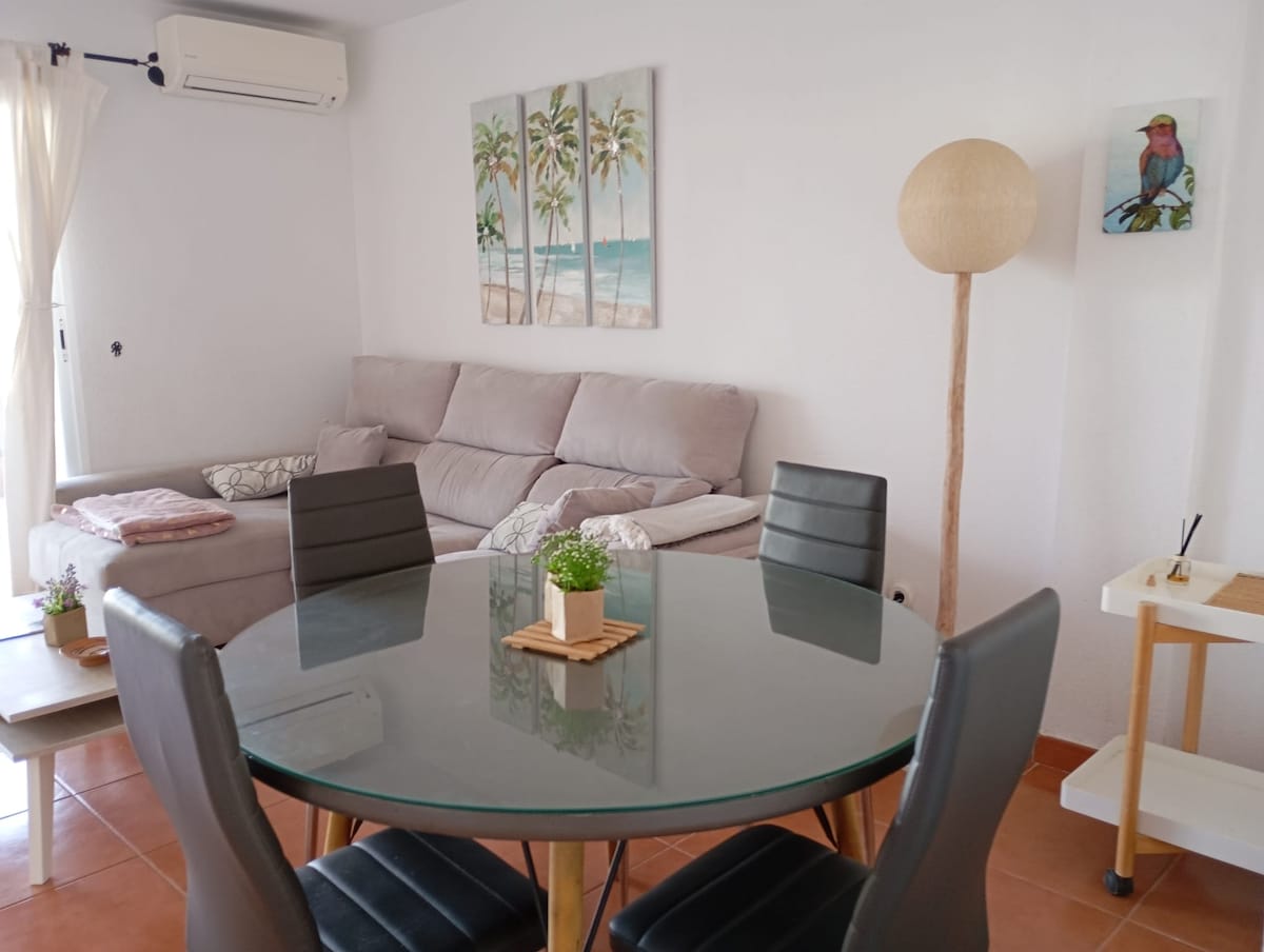 APPARTAMENTO CON VISTA Molto luminoso, con una vista bella e rilassante. È completamente attrezzato, con una bella decorazione. Terrazza con tende. L'appartamento si trova in una zona residenziale tranquilla e ben curata, perfetta per riposare. La spiaggia è a 10 minuti a piedi. Garrucha è molto vicina È ideale per gli amanti del golf; della Natura allo stato puro per la vicinanza del nostro meraviglioso "Parco Naturale Cabo de Gata". Ideale anche per soggiorni lunghi e per lavorare da casa.