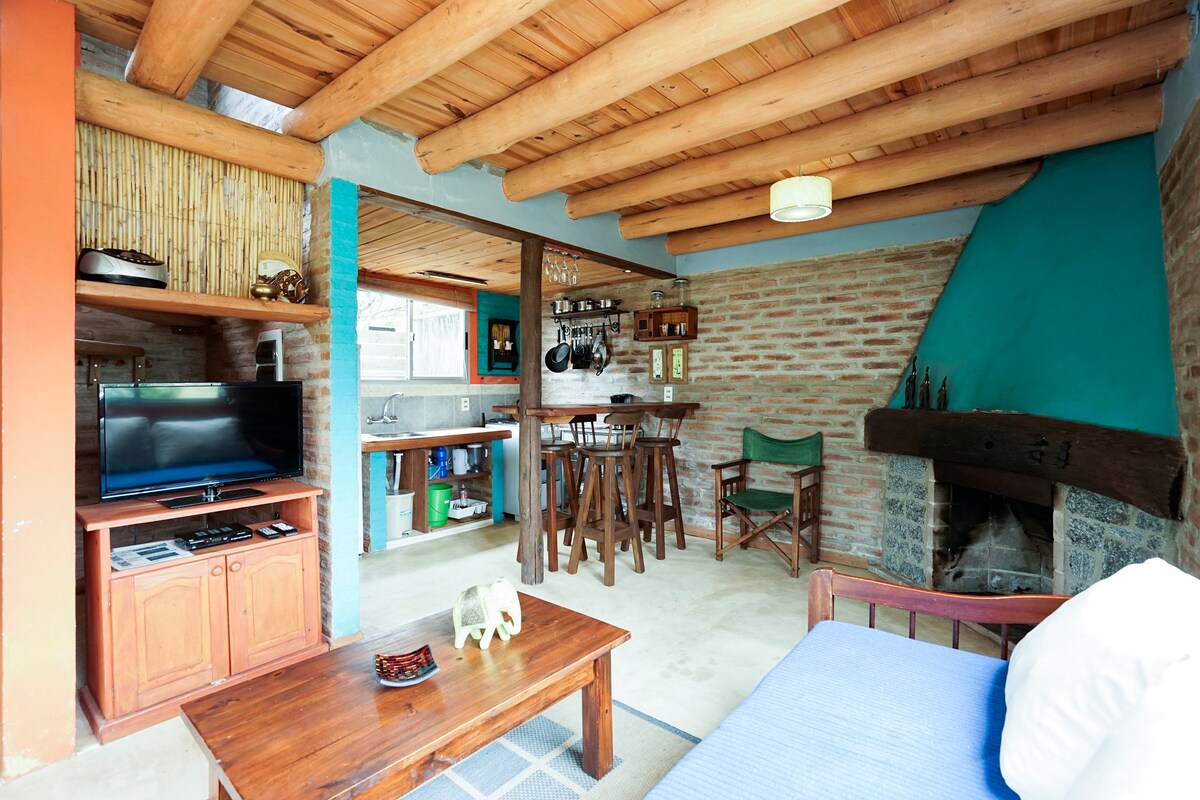 Bellissima capanna rustica, caratterizzata dal suo arredamento caldo e chic, super luminosa, con terrazza nella parte anteriore e in camera da letto (sole tutto il giorno fino al tramonto). Giardino con barbecue in un ambiente naturale. Situato a 300 metri da Playa Rivero e a 400 metri da Playa Grande (Santa Teresa), vicino ai migliori ristoranti, supermercati e al centro commerciale di Punta del Diablo.