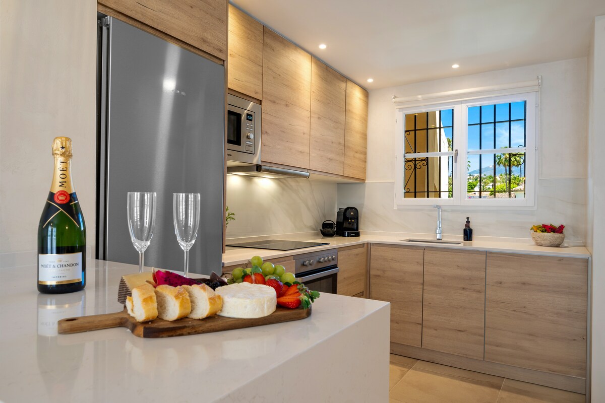 Il nostro nuovo appartamento di lusso si trova a soli 8 minuti dal centro di Marbella. Offre viste sul mare, creando un ambiente tranquillo per la tua vacanza spagnola. L'appartamento presenta un'eleganza scandinava con linee pulite, toni neutri e un design minimalista, che creano un'atmosfera luminosa e sofisticata per un soggiorno memorabile. I nostri ospiti possono accedere gratuitamente alla spa con piscina riscaldata, sauna e palestra, e godere di una fantastica vista sul mare. La palestra è ben attrezzata con macchine di alta gamma, mentre la clubhouse aggiunge un elemento sociale al soggiorno.