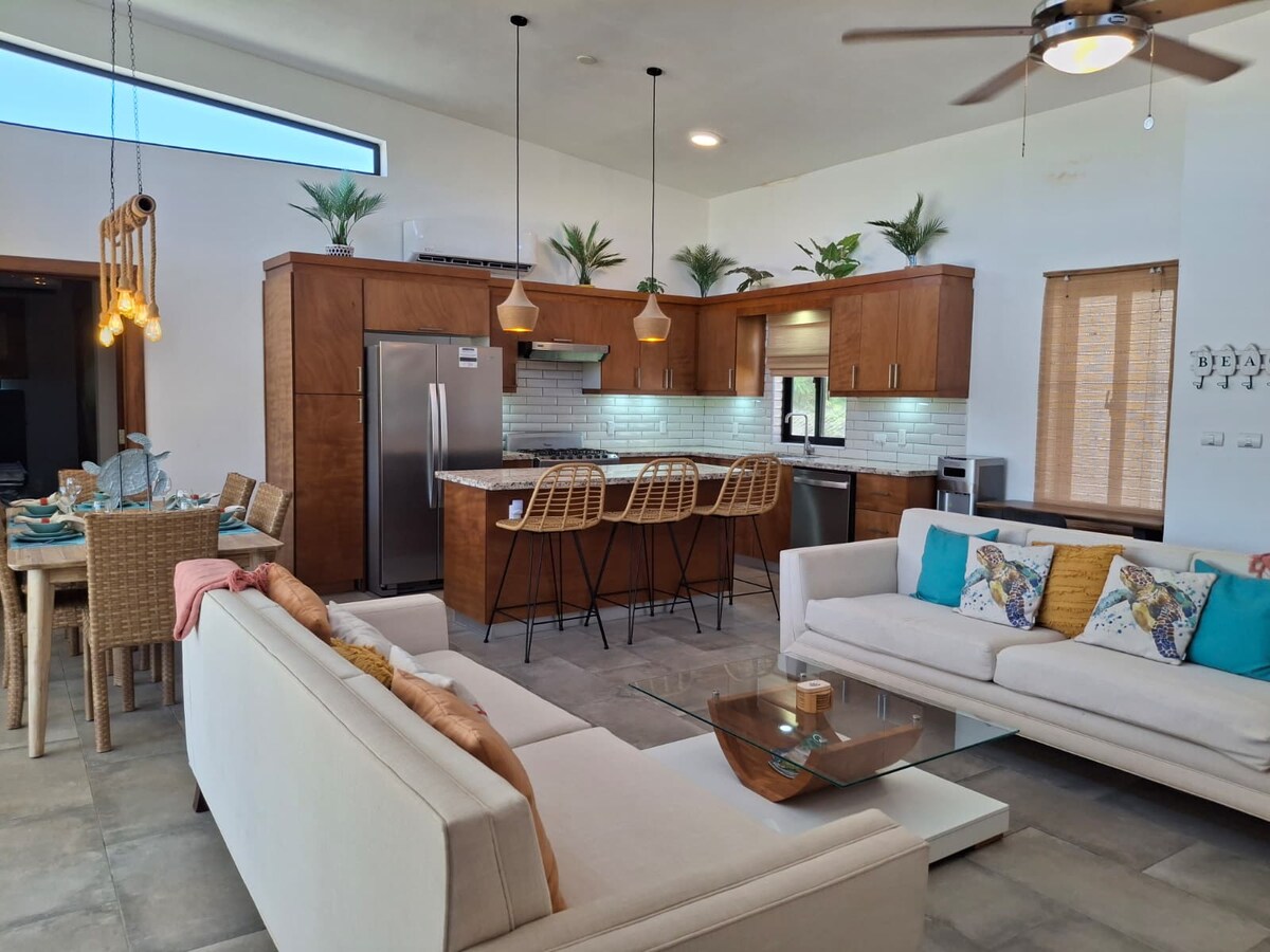 Brand new tastefully furnished 3 bedroom 3 bathroom vacation villa with stunning lagoon views. 10min walking from Encuentro Surf Beach. ElParq Foodpark and the Encuentro Bakery are just around the corner. 24h security 100mb fibre optic internet. AC in all rooms All you need for your amazing vacation stay in paradise!