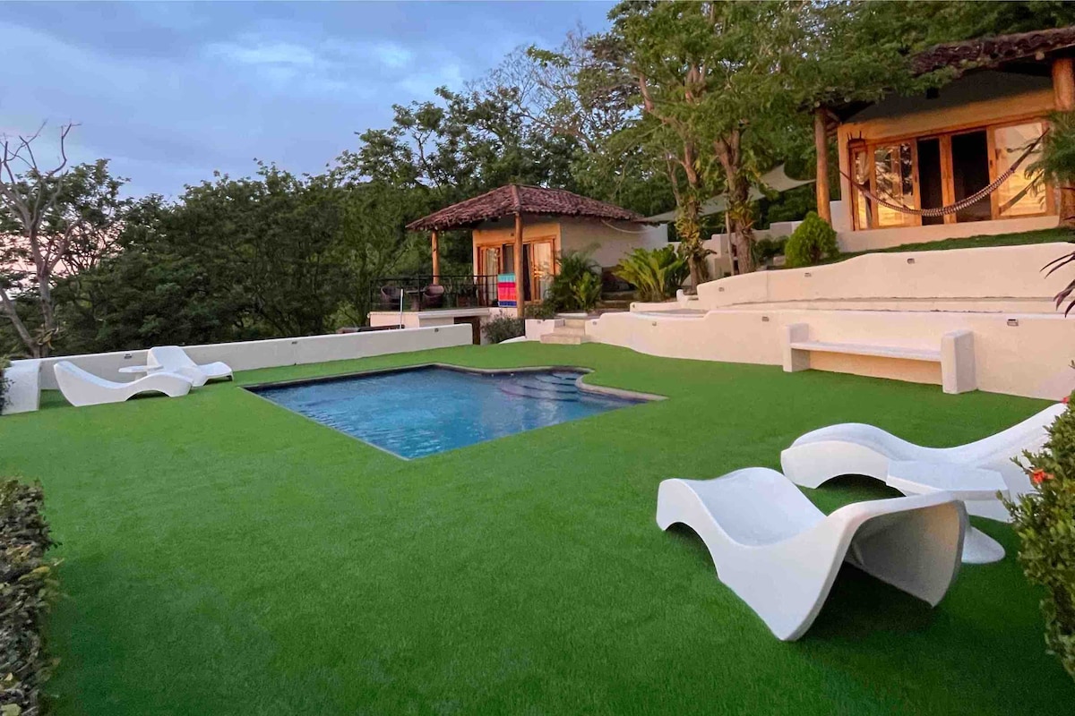 Santa Cruz in San Juan del Sur welcomes you. Wake-up in the morning and enjoy a stuning ocean view over the bay of San Juan del Sur. Take a bath in your private pool surrounded of tropical palms and plants. NEW luxury motorized blinds for full privacy in your own pool house. Just 5 walking minutes from the beach and the City of San Juan del Sur. But Santa Cruz is enough far away from the city to be nestled in your privacy with your private pool. New with ROKU-TV.