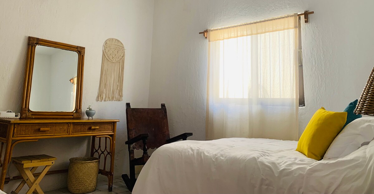 Piccolo ma completamente attrezzato monolocale. A solo mezzo isolato dalla spiaggia. Secondo piano con balcone privato e vista parziale sull'oceano. Postazione di lavoro e internet ad alta velocità. L'unità fa parte ma indipendente dal nostro boutique hotel. La nostra struttura offre uno stile di vita in cui la raffinatezza incontra il comfort, dove ogni dettaglio riflette uno spazio abitativo sofisticato. Molto unico per il territorio. Disponibile per soggiorni di almeno 2 notti o soggiorni a lungo termine. Servizi di pulizia inclusi in entrambe le opzioni. 20 m ².