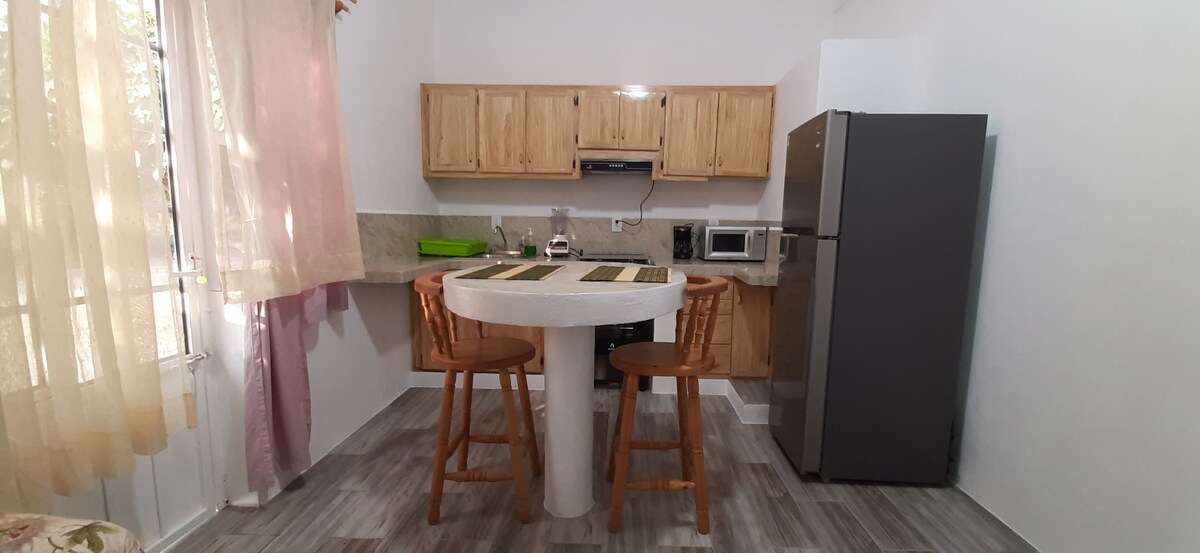 Piccolo ma completamente attrezzato monolocale. A solo mezzo isolato dalla spiaggia. Secondo piano con balcone privato e vista parziale sull'oceano. Postazione di lavoro e internet ad alta velocità. L'unità fa parte ma indipendente dal nostro boutique hotel. La nostra struttura offre uno stile di vita in cui la raffinatezza incontra il comfort, dove ogni dettaglio riflette uno spazio abitativo sofisticato. Molto unico per il territorio. Disponibile per soggiorni di almeno 2 notti o soggiorni a lungo termine. Servizi di pulizia inclusi in entrambe le opzioni. 20 m ².