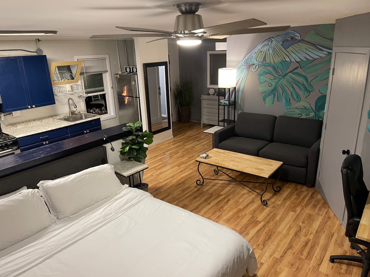 Benvenuto nella nostra pensione monolocale appena ristrutturata! Perfetto per uno, perfetto per due. La nostra pensione è dotata di letto matrimoniale, armadio, tre cassettiere, TV a schermo piatto, Wi-Fi, divano/futon, mini frigo, macchina per il caffè, piano cottura a quattro fuochi, riscaldamento, aria condizionata, forno a microonde e una lussuosa cabina doccia. Ideale per raggiungere a piedi caffetterie, ristoranti, bar e mezzi pubblici. A breve distanza in auto (a pochi minuti) da Venice Beach, Marina del Rey e dall'aeroporto LAX. Ci troviamo in un bel quartiere del Westside.