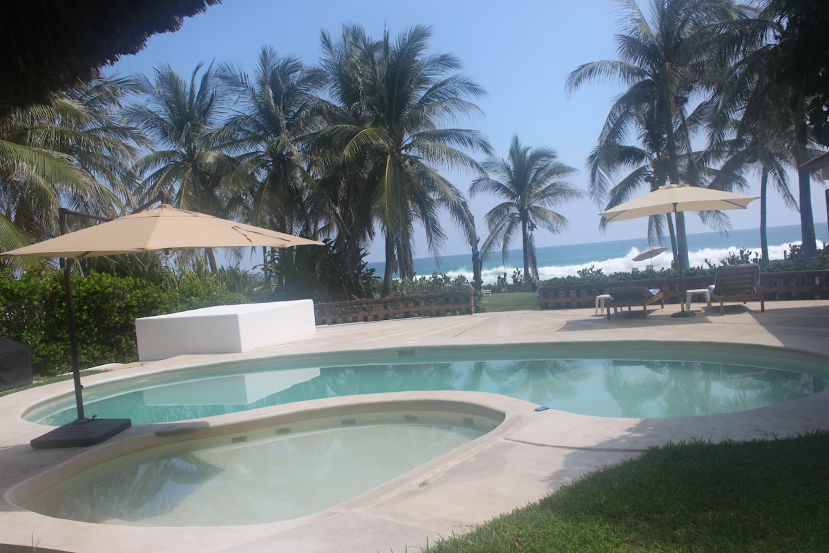 Ristrutturato con 2 camere da letto in più nel 2024! Fuggi nel tuo paradiso privato, a pochi passi dalla spiaggia di Palmarito, a Puerto Escondido, in Messico. Dotato di tre camere da letto, ognuna con un letto matrimoniale, questo paradiso offre una vista mozzafiato sull'oceano. Goditi i comfort di aria condizionata, angolo cottura interno ed esterno e un ampio patio con torre sulla spiaggia e piscina privata. Scollegati e immergiti nella bellezza dell'Oceano Pacifico. Che si tratti di surf o pesca nelle famose acque di Puerto Escondido.