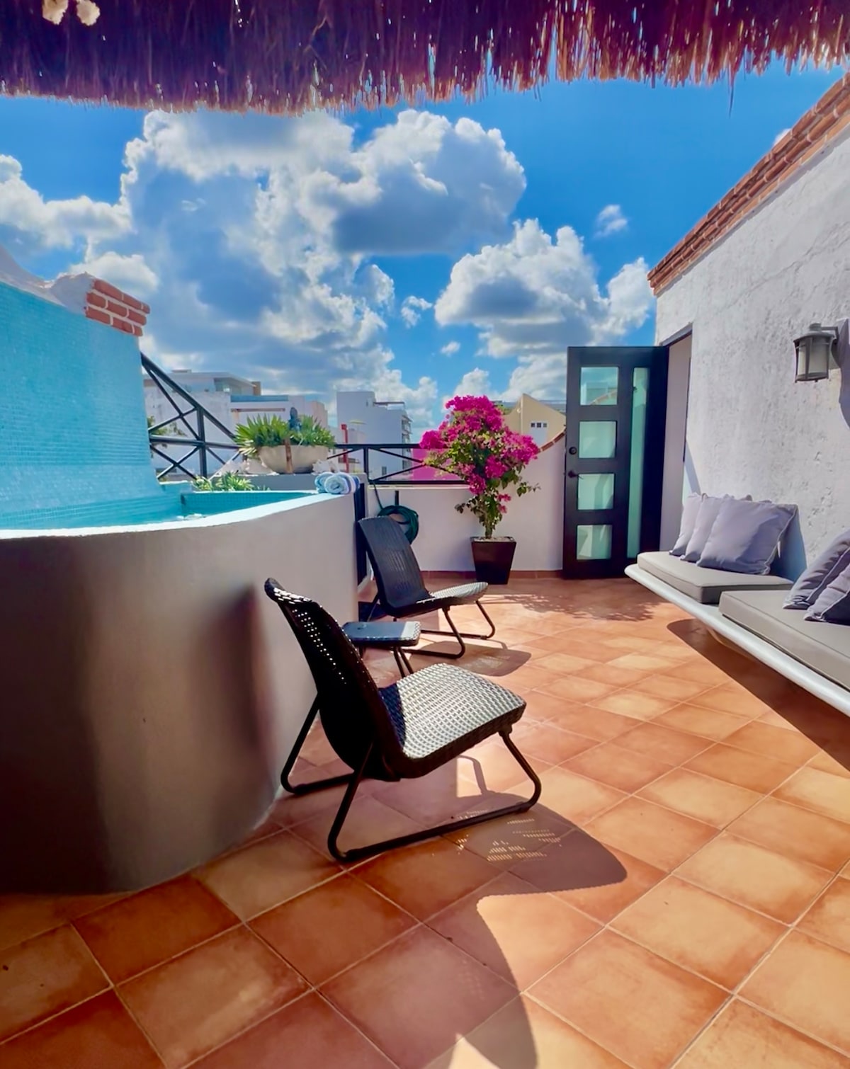 A 2 minuti a piedi dal mare, sulla famosa 5th Avenue con 34th Street, in una zona sicura, questo fantastico appartamento è perfetto per chi ama il buon stile di vita. Terrazza privata con vasca idromassaggio che si affaccia su un giardino tropicale, connessione internet wifi gratuita e parcheggio privato. Aluxeshome dispone di un ampio soggiorno con divano letto, una camera da letto, 2 bagni e una cucina. Ascensore e guardia di sicurezza. Vicino ai migliori stabilimenti balneari, ristoranti, caffetterie, negozi, locali d'arte e musica. Facile da raggiungere in autobus ADO, taxi o auto.