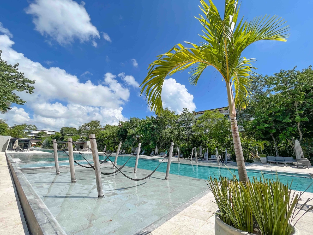 Soggiorna in un moderno appartamento di lusso nel centro di Playa del Carmen, a pochi minuti dalla 5th Avenue, dalla spiaggia, dai negozi di alimentari, dai bar e dal traghetto per Cozumel. Goditi le piscine in stile resort, una palestra completa, un parco giochi, aree verdi lussureggianti e bellissimi sentieri in tutta la comunità. Grazie al facile accesso alla Federal Highway, esplorare cenote, parchi a tema, campi da golf e città vicine è semplice. Perfetto per coppie e famiglie che cercano comfort, sicurezza, comodità e una posizione privilegiata vicino a tutto.