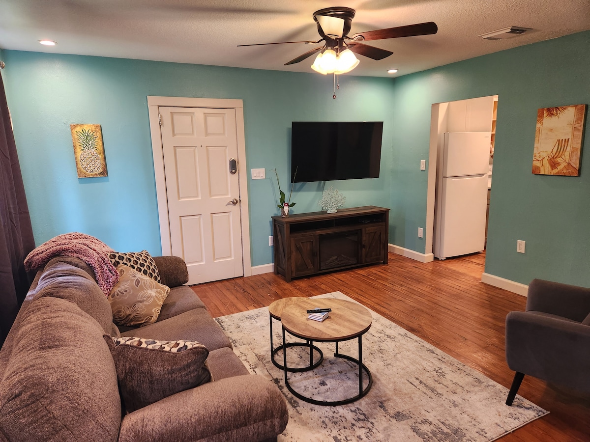 Newly remodeled cozy studio apartment with many amenities one block from the beach. Conveniently located between Port Canaveral and Downtown Cocoa Beach. Clean and affordable beach getaway with grocery stores, bars, and restaurants near by. Live television only available with an active account to a live streaming apps. Message host if your length of stay is not available at time of booking.