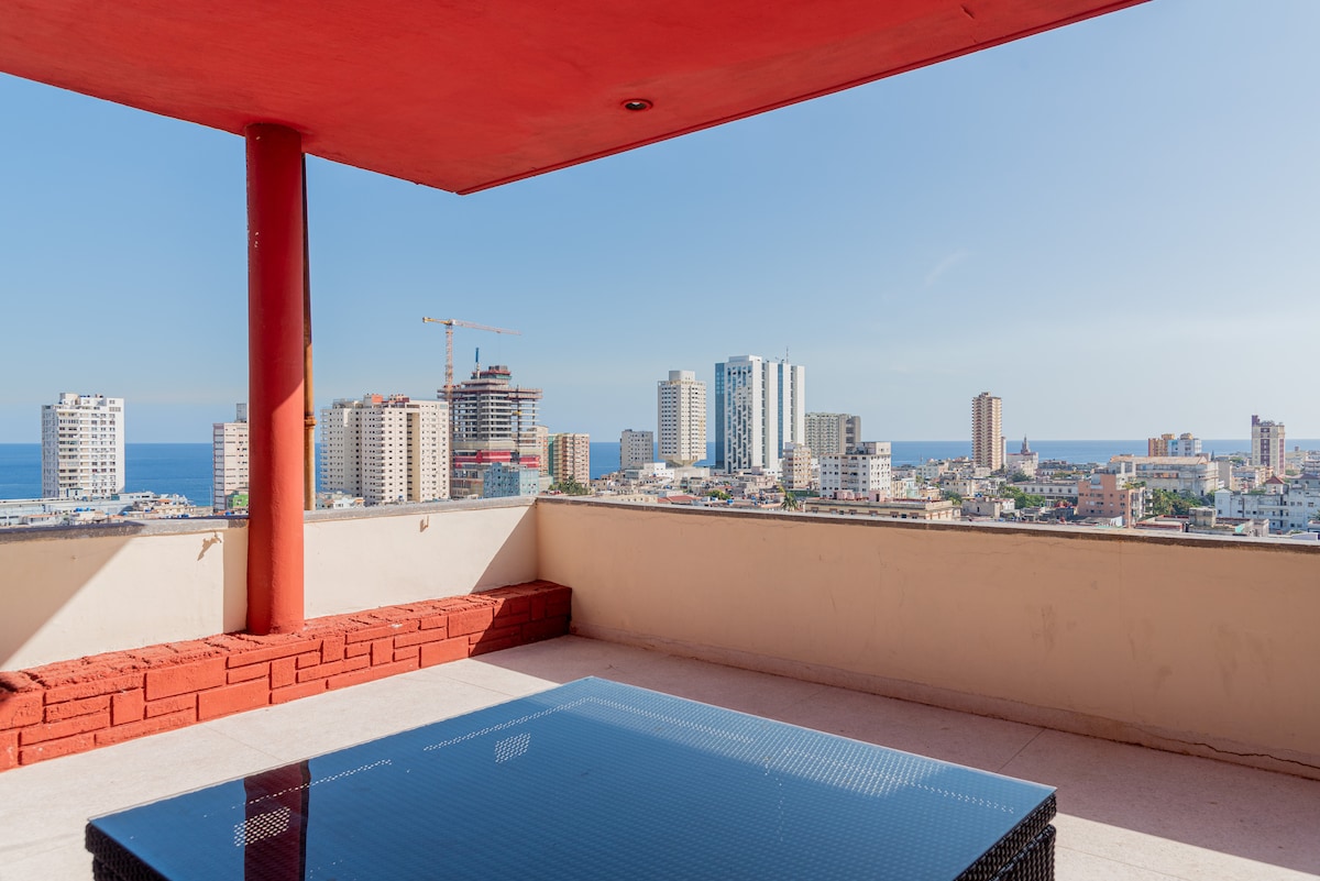 Beautiful Penthouse stands on the entire upper level of a 1940 Artdeco building in the heart of the hip artistic Vedado district, within steps of trendy restaurants, music venues, theater, pubs, Malecón, Hotel Cohiba and Riviera, and 10-min drive to Old Havana. 3 rooms with ensuite baths, a spacious open and modern kitchen, living room, Front balcony and private roof terrace with comfortable dining/lounging areas, out-side shower and breathtaking views of Havana and El Malecon. 🕊