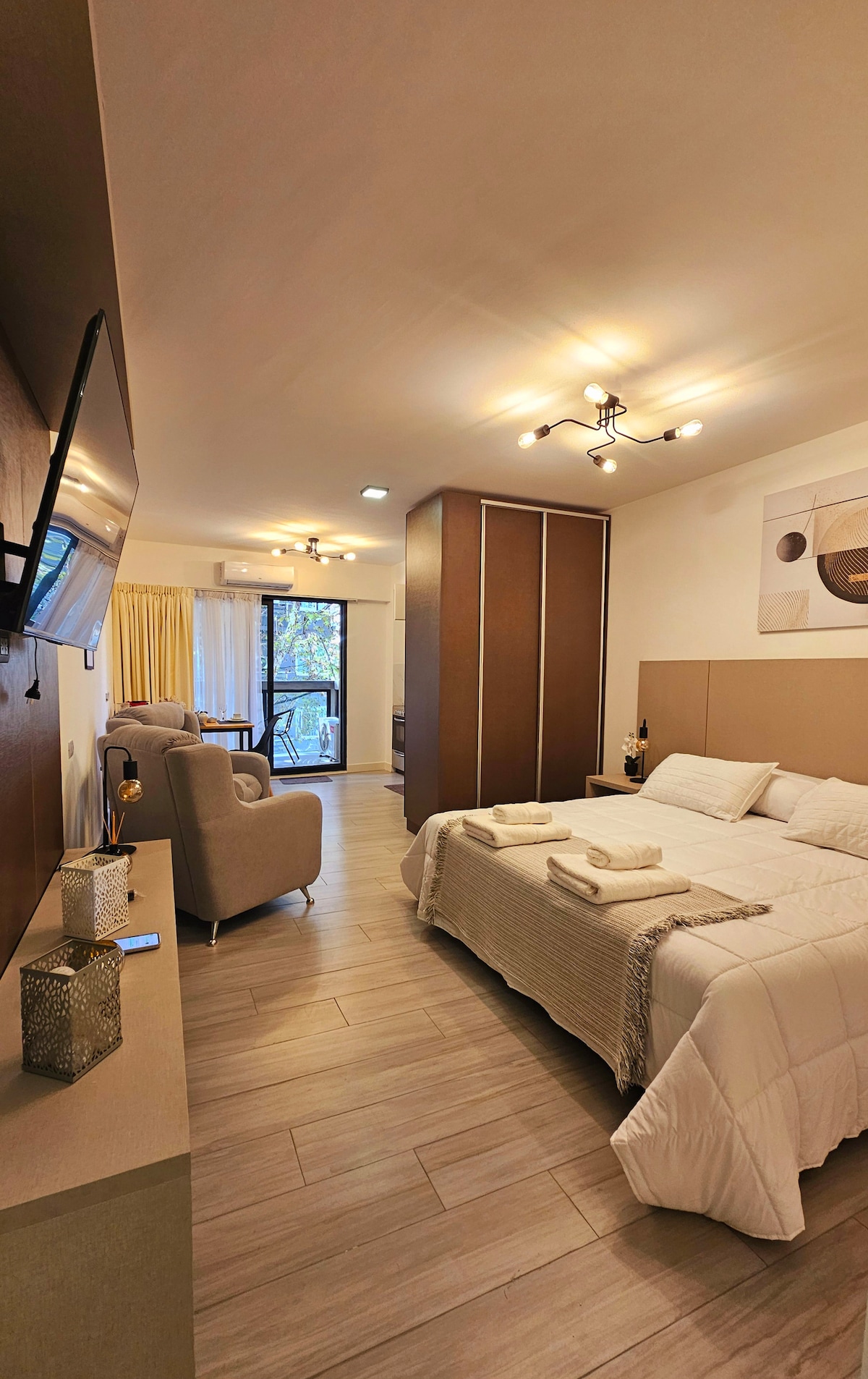 Moderno e luminoso monolocale premium nel cuore di Palermo Soho, situato in una torre di lusso con sicurezza 24 ore su 24, 7 giorni su 7 e self check-in. L'edificio dispone di una piscina con terrazza e vista panoramica, palestra e lavanderia al 10° piano. Design e comfort, ideale per un soggiorno tranquillo e senza problemi. A solo mezzo isolato dal ristorante Don Julio (stella Michelin) e circondato da bar e caffetterie. Facile accesso ai mezzi pubblici. Ideale per gli ospiti che cercano una posizione privilegiata e servizi di alta qualità.