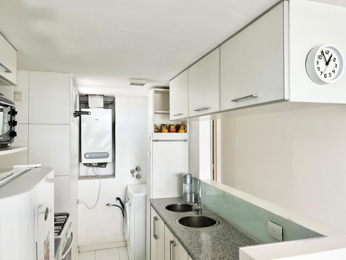 Appartamento di ambiente confortevole moderno e completamente arredato per farvi godere il vostro soggiorno. Situato nel centro di La Plata, a un isolato da Plaza Paso. Dispone di una cucina completamente attrezzata con bancone per la colazione, frigorifero, bollitore elettrico, tostapane, macchina del caffè, forno a microonde e utensili. Ha un letto a due piazze, ripostigli e un bagno completo con doccia. Aria condizionata, pannello riscaldante, biancheria da letto e Wi-Fi inclusi. Check-out posticipato soggetto a disponibilità (a un costo aggiuntivo)