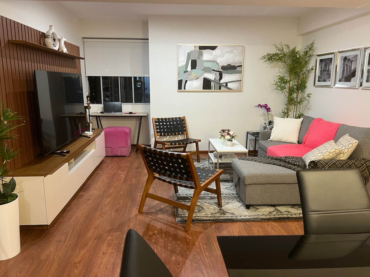 Excelente para larga estadía. Cocina completa, 2 baños con agua caliente contínua, gas natural, lavadora-secadora. Espacio con bastante iluminación natural de día y una iluminación regulable para noches de descanso. Además, tendrán 2 escritorios (1 en sala y 1 en dormitorio) para el home office Balcón con una vista impresionante de la costa de Lima durante tu estadía. Departamento entero para ti. A solo 25 minutos del aeropuerto en auto.