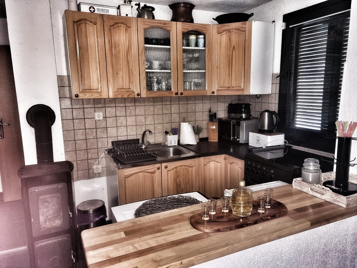 Little wooden house is situated in a peaceful small village near by Plitvice Lakes National Park. Split into 2 levels and it is completely furnished. It consists of kitchen (oven, stoves, coffee machine, water heater), dining room, living room (SAT-TV and AC), and bathroom on the first level.