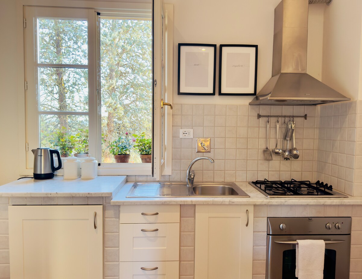 Nuova sistemazione all'interno di Villa Migliorini, una villa storica del XIV° secolo. La Villa è stata acquistata dalla Famiglia Migliorini nel 1700. La casa è al piano terra composto da una spaziosa camera da letto (con smart-tv dotata di connessione a Netflix), un grande bagno comunicante e una cucina attrezzata dalla quale si accede ad un giardino ad uso esclusivo. Presente Wifi e A/C. La Tassa di Soggiorno deve essere corrisposta dopo il check-in. L’auto è fortemente consigliata.