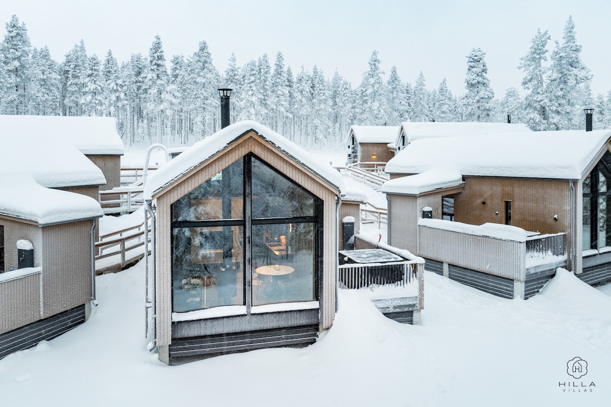 Scollegati dal mondo esterno e goditi la privacy di questo nuovo chalet, un luogo speciale con imponenti alberi lambiti che ti circondano e una vasca idromassaggio gorgogliante per migliorare la tua esperienza in Lapponia. Immagina di risvegliarti ogni mattina con la vista sul verde vivace o su un paesaggio innevato, per poi concludere la giornata con una rilassante sessione di sauna. All'interno, scoprirai un'ampia area di 56 m ², con una parete verde Naava, una TV HD e una connessione Wi-Fi a 100 Mbps! Noleggiamo anche un'auto!