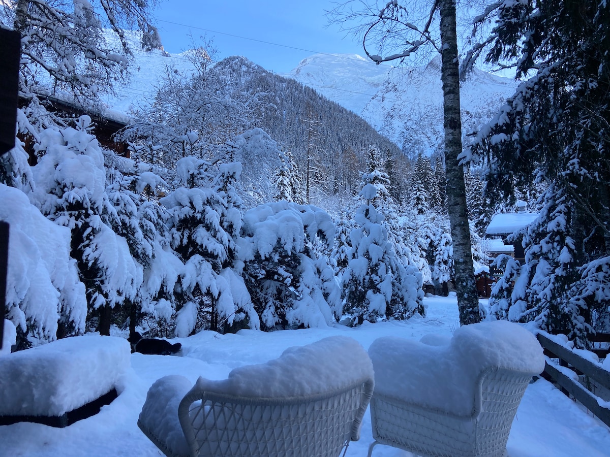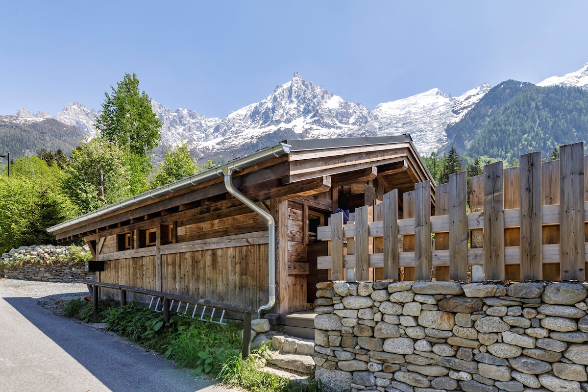 Siamo lieti di ospitarvi nella nostra adorabile casetta/ vecchio fienile in muratura completamente ristrutturato e riallestito con cura a metà del 2021. Bella terrazza esposta a sud ombreggiata nel pomeriggio, vista davvero magnifica e aperta sul Monte Bianco, le Aiguilles di Chamonix, "ai piedi" del ghiacciaio dei Bossons di fronte. A 20 metri dalla strada in una zona residenziale. Trasporti a 2 passi. 2 posti auto davanti alla casa. Wi-Fi. Niente TV.