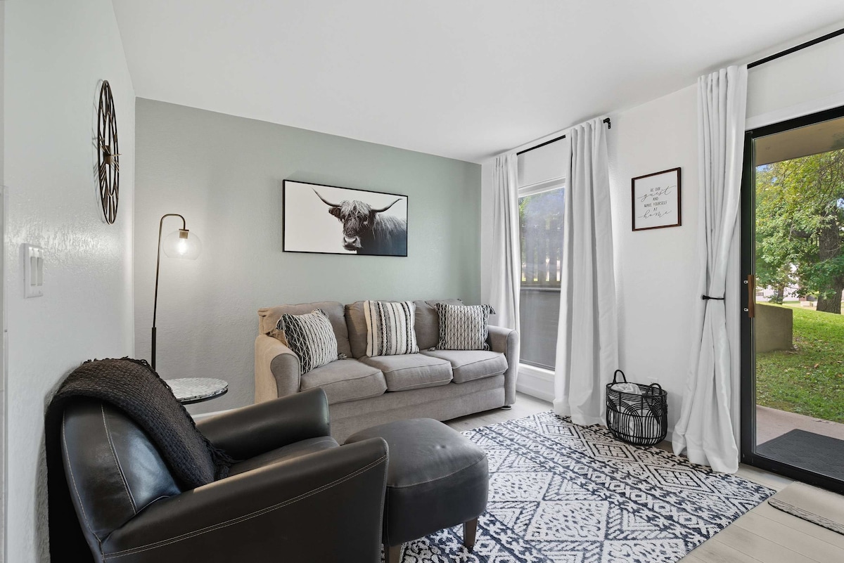 This quiet suite has a convenient ground floor location nestled alongside a golf course. The suite includes a well equipped kitchen with dining/living common area. Whip up delicious meals, then enjoy an after-dinner drink relax on the private patio. Additional perks: high speed Wi-Fi, dedicated work space, private washer/dryer and outdoor grill. Explore the great outdoors or enjoy a show in the city—this condo gets you close to it all. Note, a 4% tourist tax will be added after you book.
